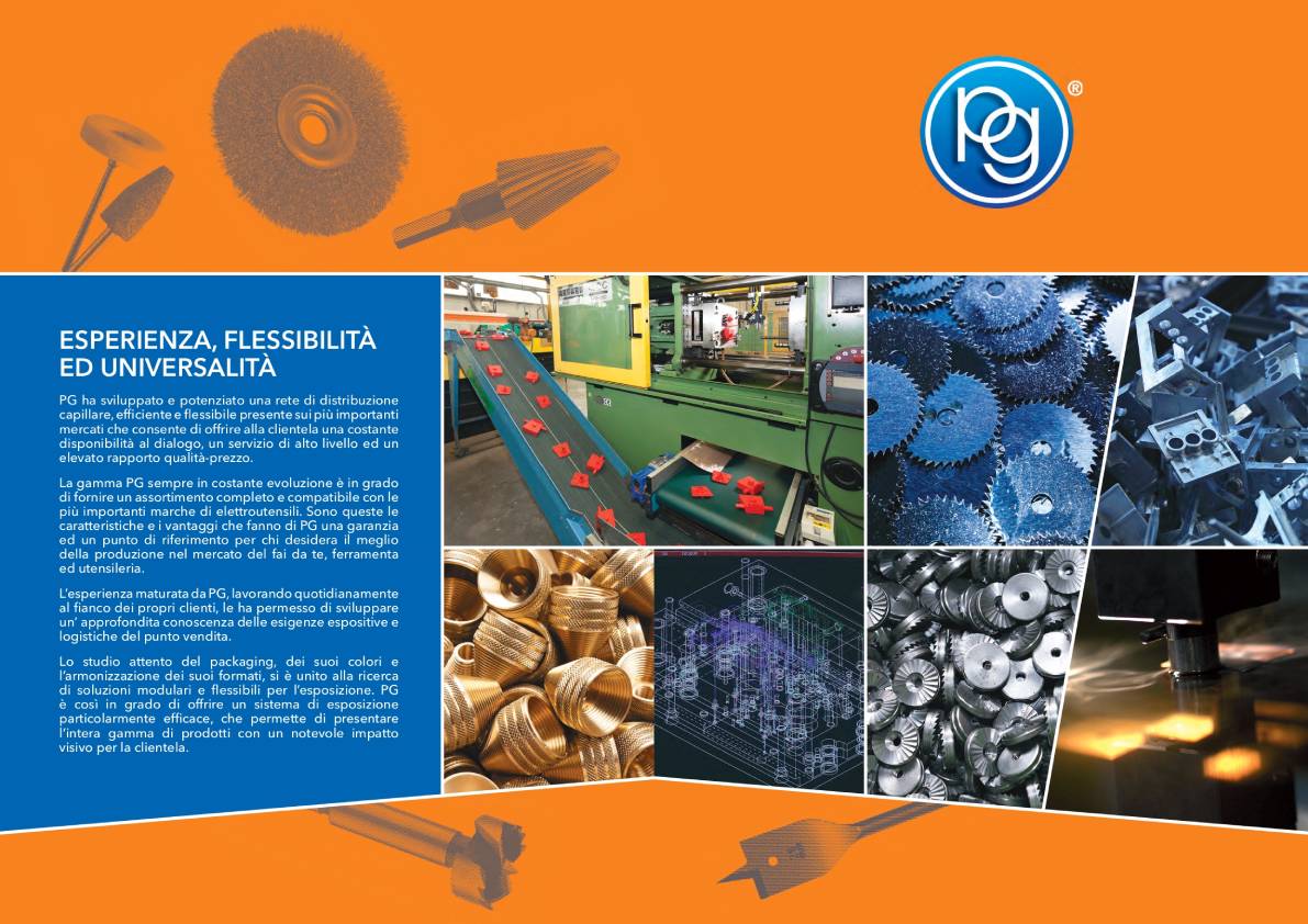 PG S.r.l. è un'azienda italiana con una lunga tradizione nella produzione e distribuzione di utensili e accessori universali per elettroutensili.